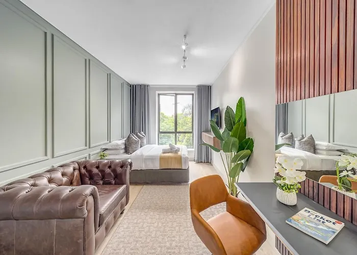 El Executive Studio Apartment -Rosebank Johannesburgo está situado a unos 25 minutos a pie del Estadio Wanderers, y a 4 km de los Jardines Botánicos de Johannesburgo y Presa Emmarentia. Se encuentra a 700 metros de la estación de tren Rosebank y a unos cuantos pasos de la estación de autobuses Tourist.